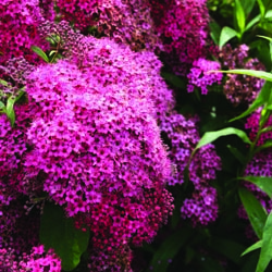 This very popular mounding shrub is an old-fashioned favorite, but it doesn’t have to be just your grandmother’s shrub – there are hydrangeas for every situation and taste. Flowers appear in early summer and can last for several weeks. Choose from pink, blue (use an acidic fertilizer to maintain this unusual color) or white blooms. Large flower heads great for drying or make outstanding arrangements and bouquets when cut. These shrubs do best in light shade or sun. One of the easiest hydrangeas to grow is the native American oak-leafed hydrangea has lobed leaves with fragrant, conical-shaped flower heads. - Butterfly Bush (Buddleia)
