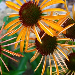 - ‘Sunset’ – Orange flowers with prominent brown central cone