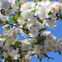 The unrivaled spring beauty of these trees can take your breath away, as they frequently bud in one color but the flowers open in another, which can create a glorious variegated effect. To add to their appeal, they perform again in the late summer or fall with a fabulous display of hanging, showy fruit that wildlife loves.